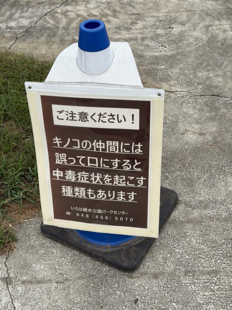 猛暑というか烈暑というかとにかく暑い日々が続いていましたが、10月になってようやく秋めいてきた日曜日、いろは親水公園を散歩していたらなにやら注意書きが…