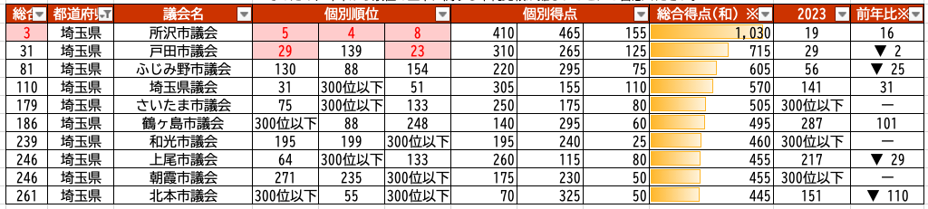 - 地域経営のための議会改革度調査2024・総合ランキング表(TOP300・PDF)