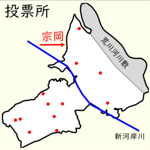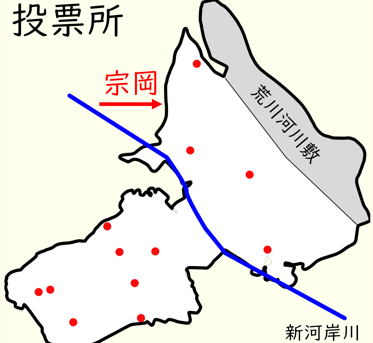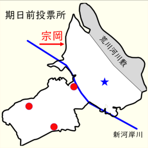 上図の3つの赤丸は志木市の期日前投票所ですが、新河岸川を越えた宗岡側には1つもありません。3つある期日前投票所の内訳は志木市役所・志木駅・柳瀬川駅付近となりますが、通勤通学等で駅を利用する有権者はいいかもしれませんが、そうではない高齢者などにとってはどうでしょうか?宗岡からだと最短が市役所ですが、投票のためにここまで往復することが難儀な方も多いのではないでしょうか?上図の青い星印は宗岡公民館ですがここに期日前投票所を設置すれば宗岡の投票率が向上するのではないかと思います。公民館ですから費用も人件費等の最小限で済むはずです